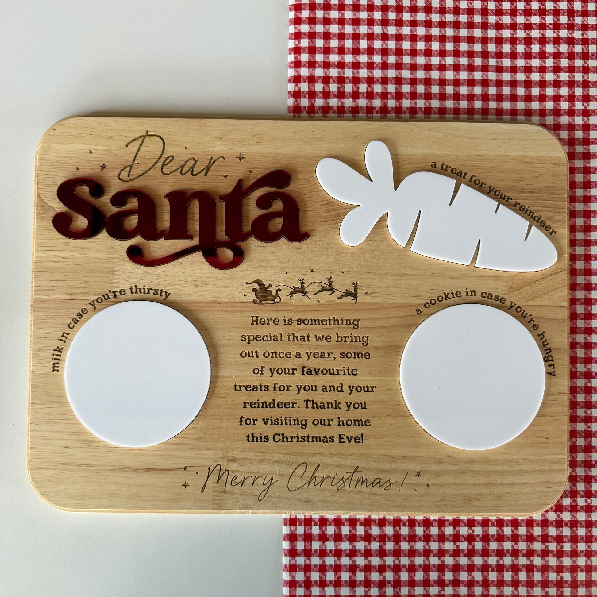 Make Christmas Eve extra special with our elegant Christmas Eve Treat Board, thoughtfully designed to delight Santa after his long night of gift-giving. Measuring 39cm by 29cm, this beautifully crafted board offers ample space to arrange an assortment of festive treats and beverages.