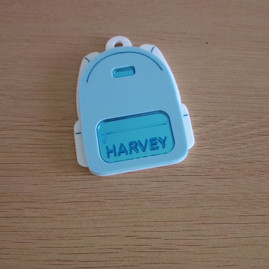 The Emergency Contact Tag allows for personalised identification with your child's name and favourite colours.